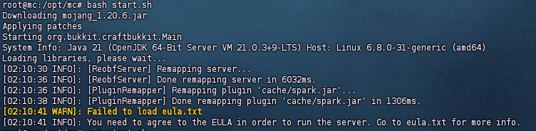 使用 vim 命令修改 eula 为 true 就可以开服了
